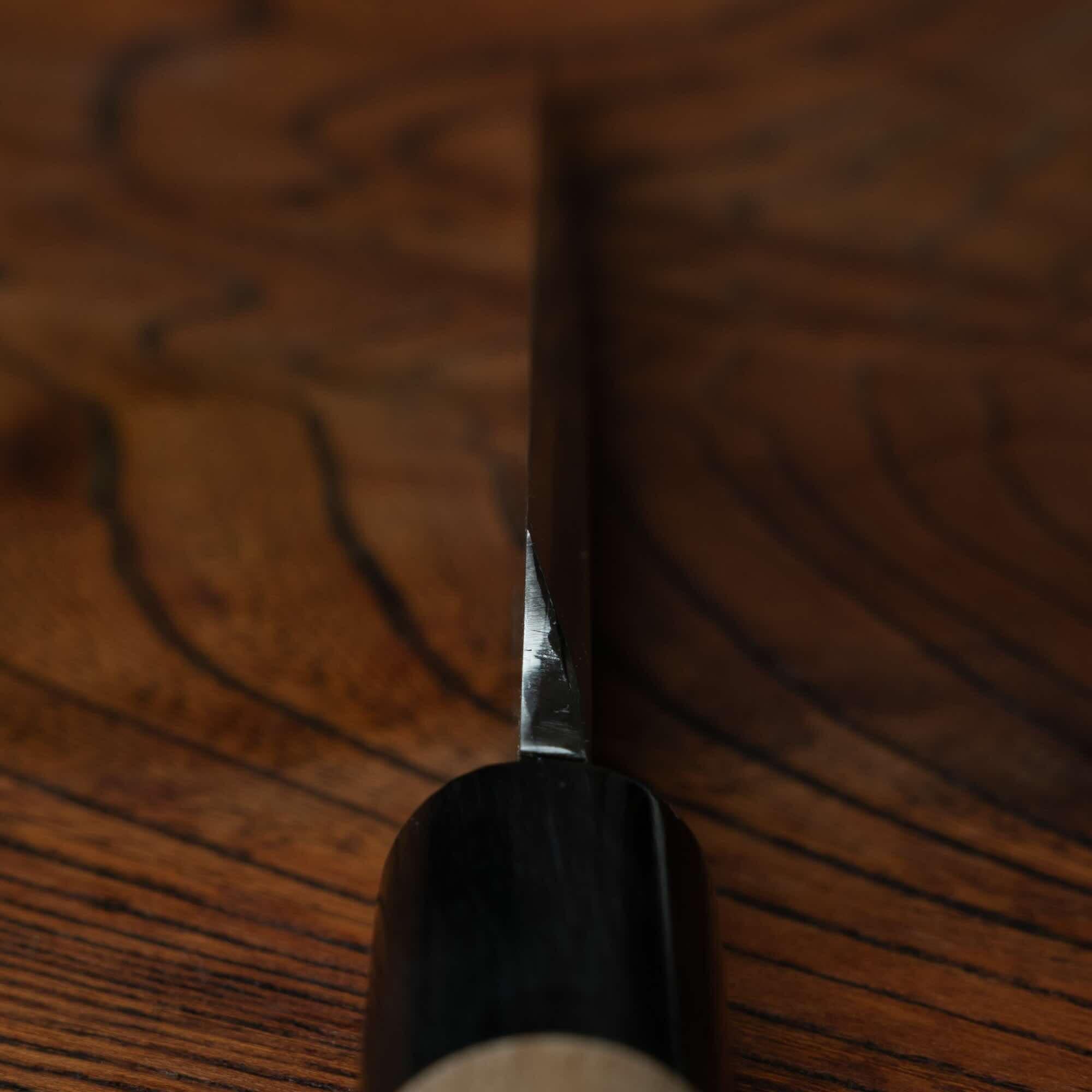 Honesuki are the preferred chef knives for efficiently de-boning and breaking down poultry or other meats. The triangular profile and sharp, pointed tip of this Japanese boning knife allow for precise cutting along bones. The thicker blade and large heel are useful for cutting through cartilage and joints.