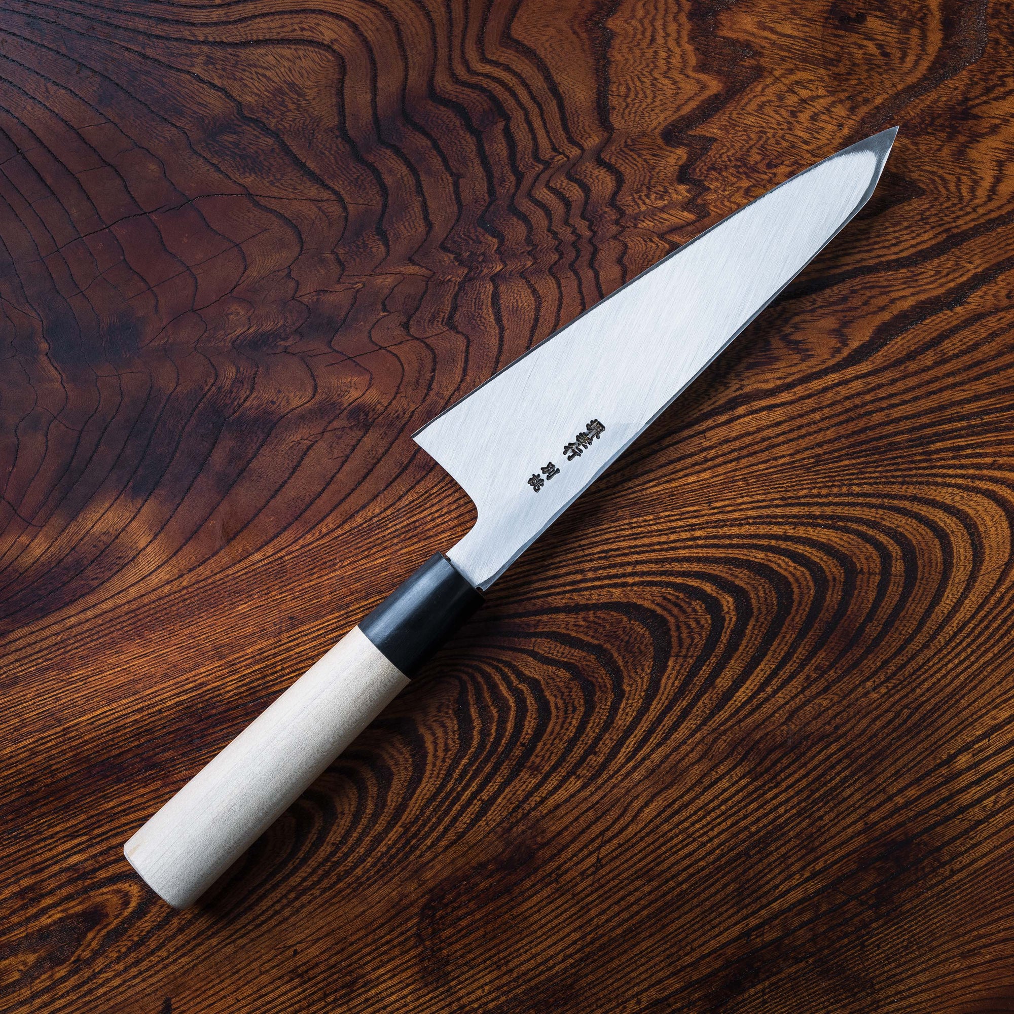 Keep a honesuki sharp with a sharpening stone and not a honing steel. To clean the knife, wash carefully by hand and dry with a towel. Do not put quality knives in the dishwasher or it will wear the blade and wood handle.
