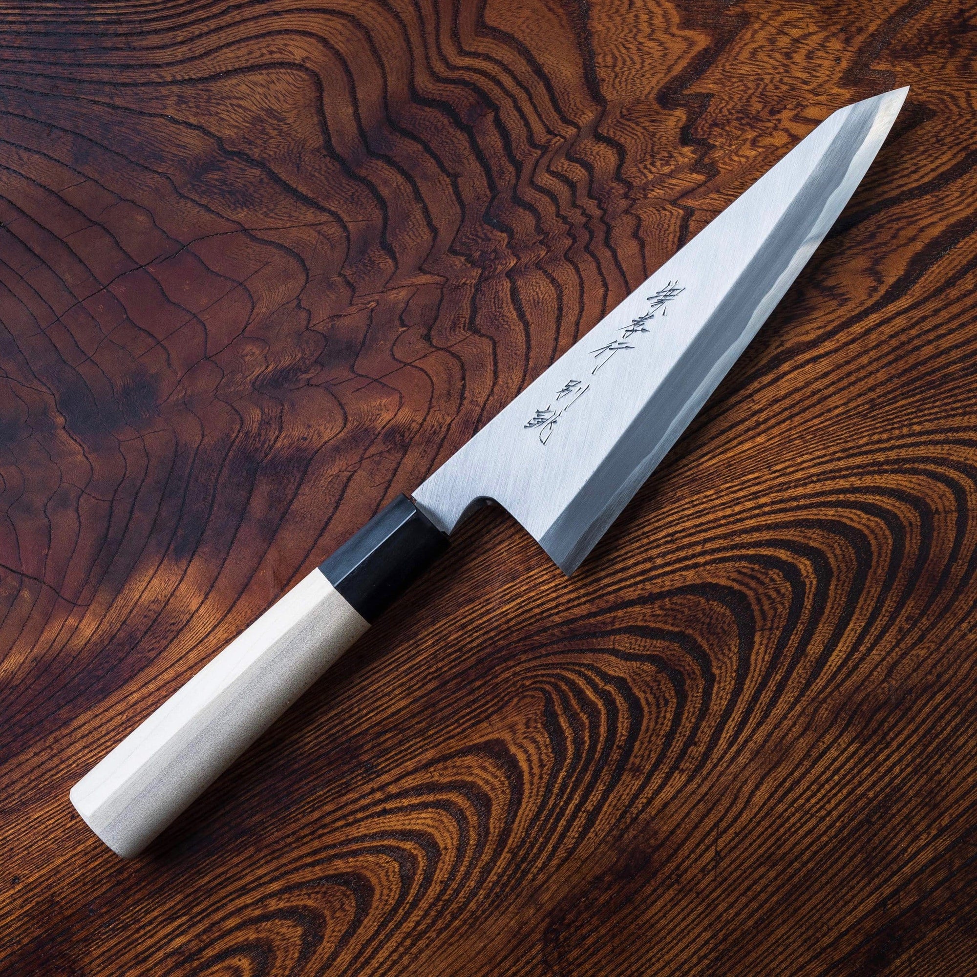 Unlike Western-style boning knives, which are typically flexible, the honesuki has a stiff, triangular blade with a sharp, pointed tip that allows for precision cuts around joints and bones.