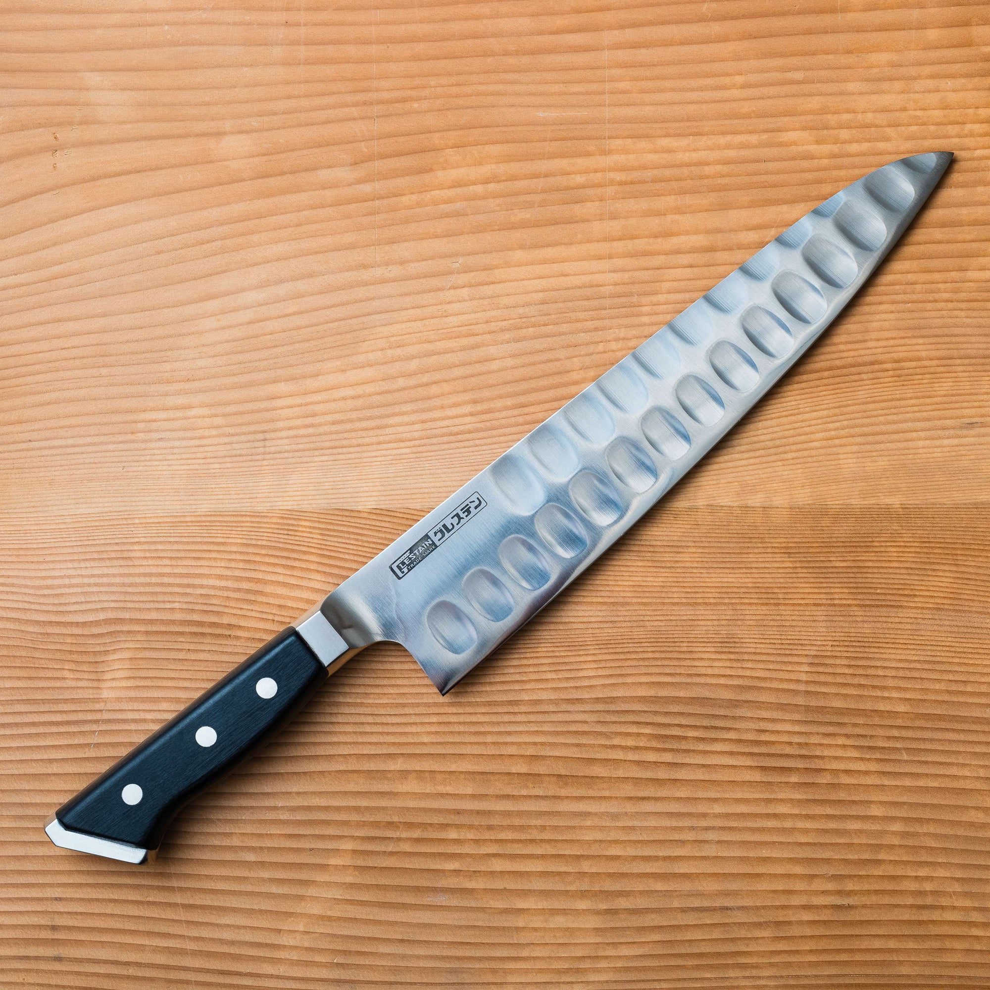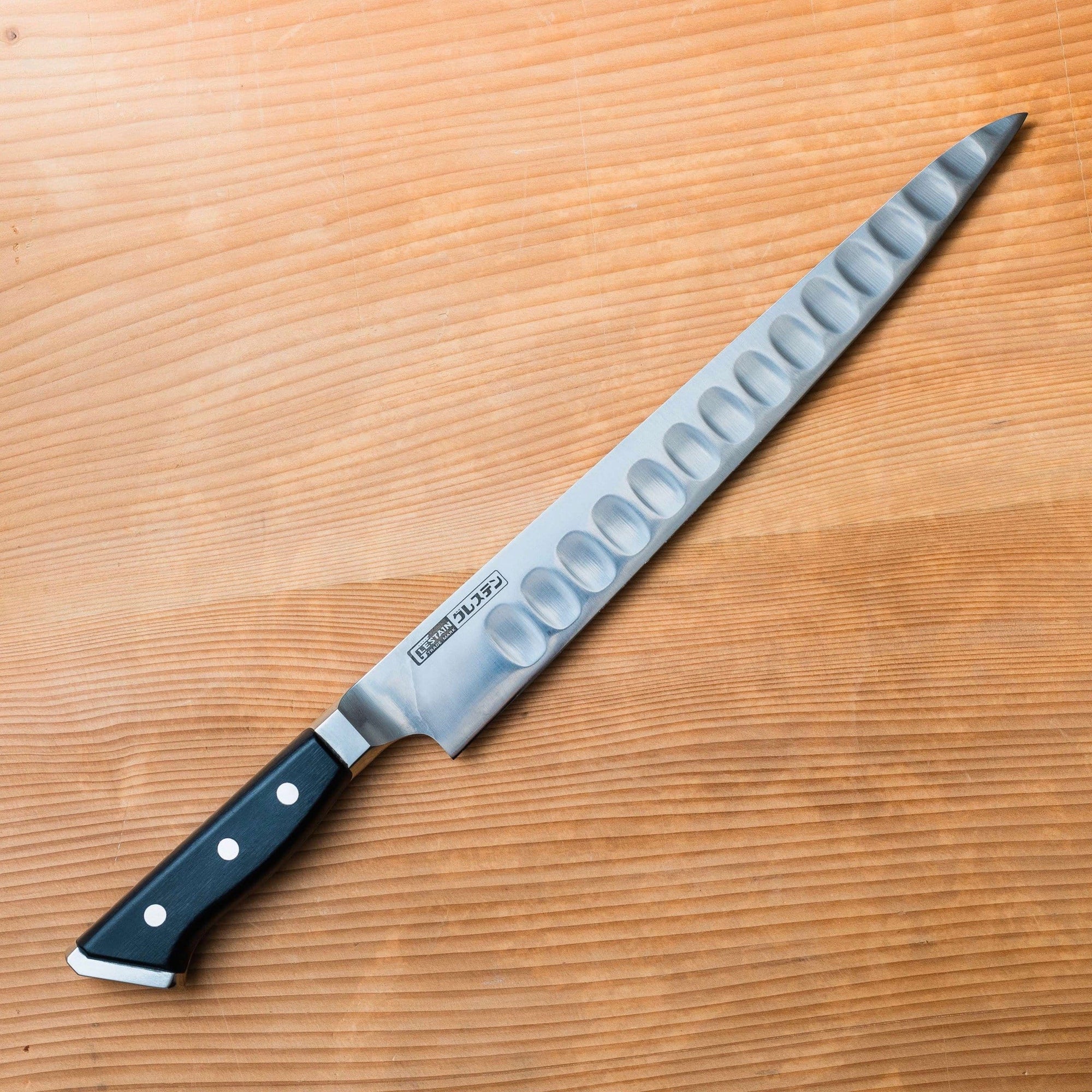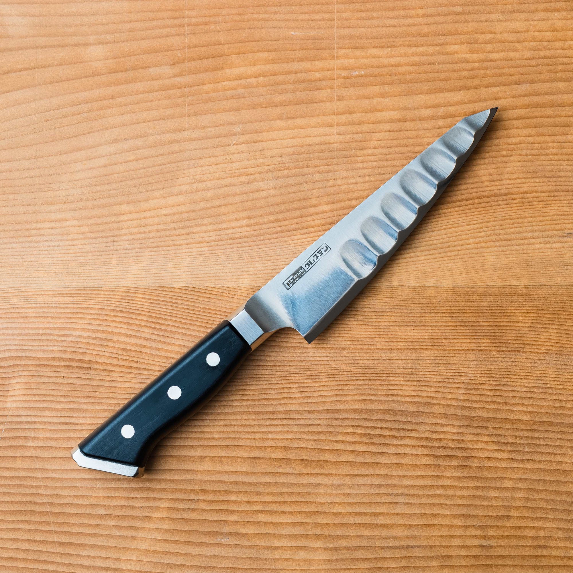 Glestain knives, made in Japan, have earned their place in professional kitchens worldwide. Known for their signature scalloped “dimples” on the side of the blade, these knives let food slide cleanly away, keeping prep work fast and efficient. Built from Acuto 440 stainless steel and treated with a sub-zero tempering process, Glestain knives hold an edge, resist rust and deliver reliable sharpness through heavy daily use.