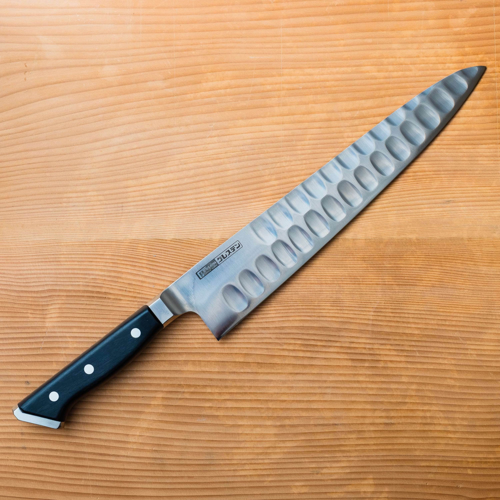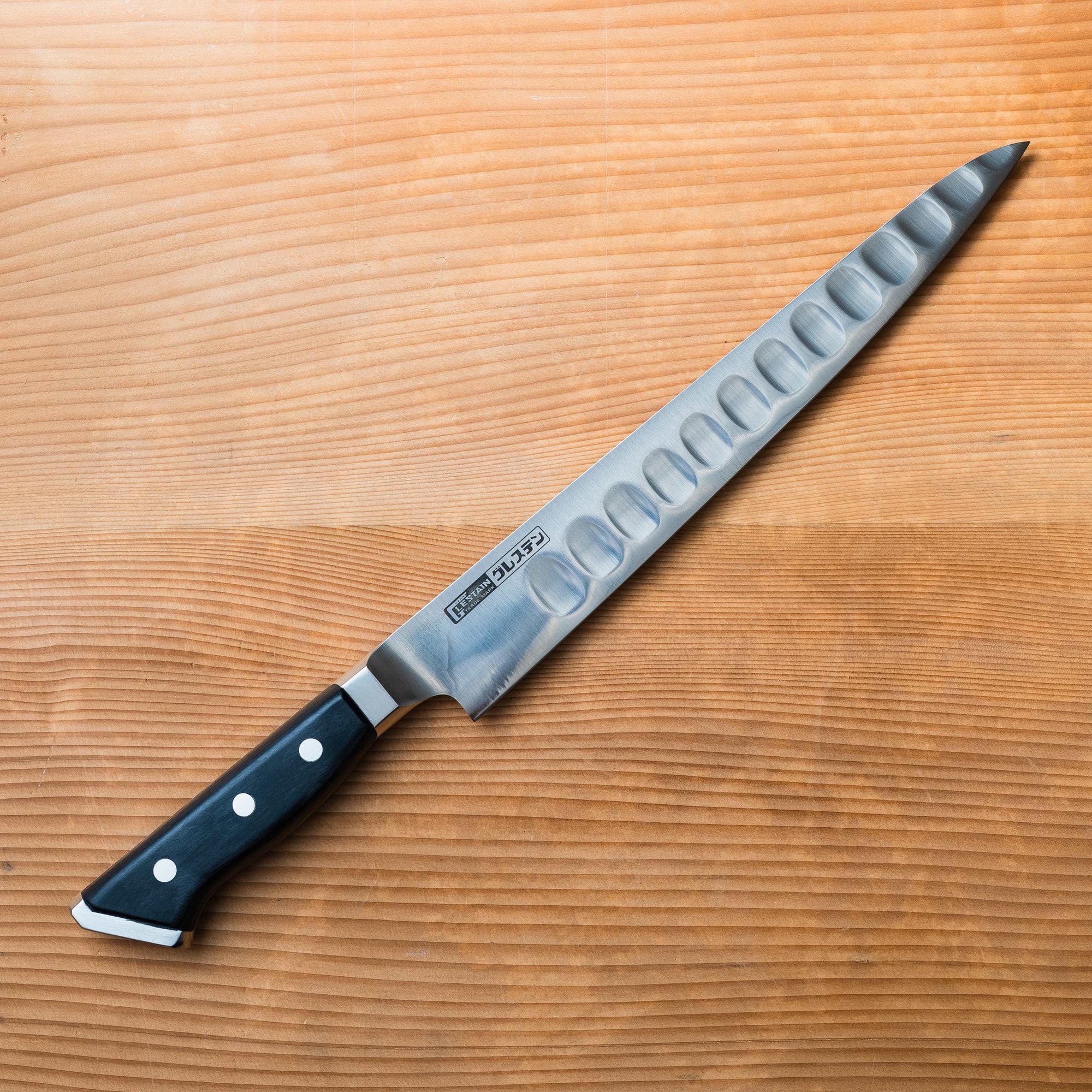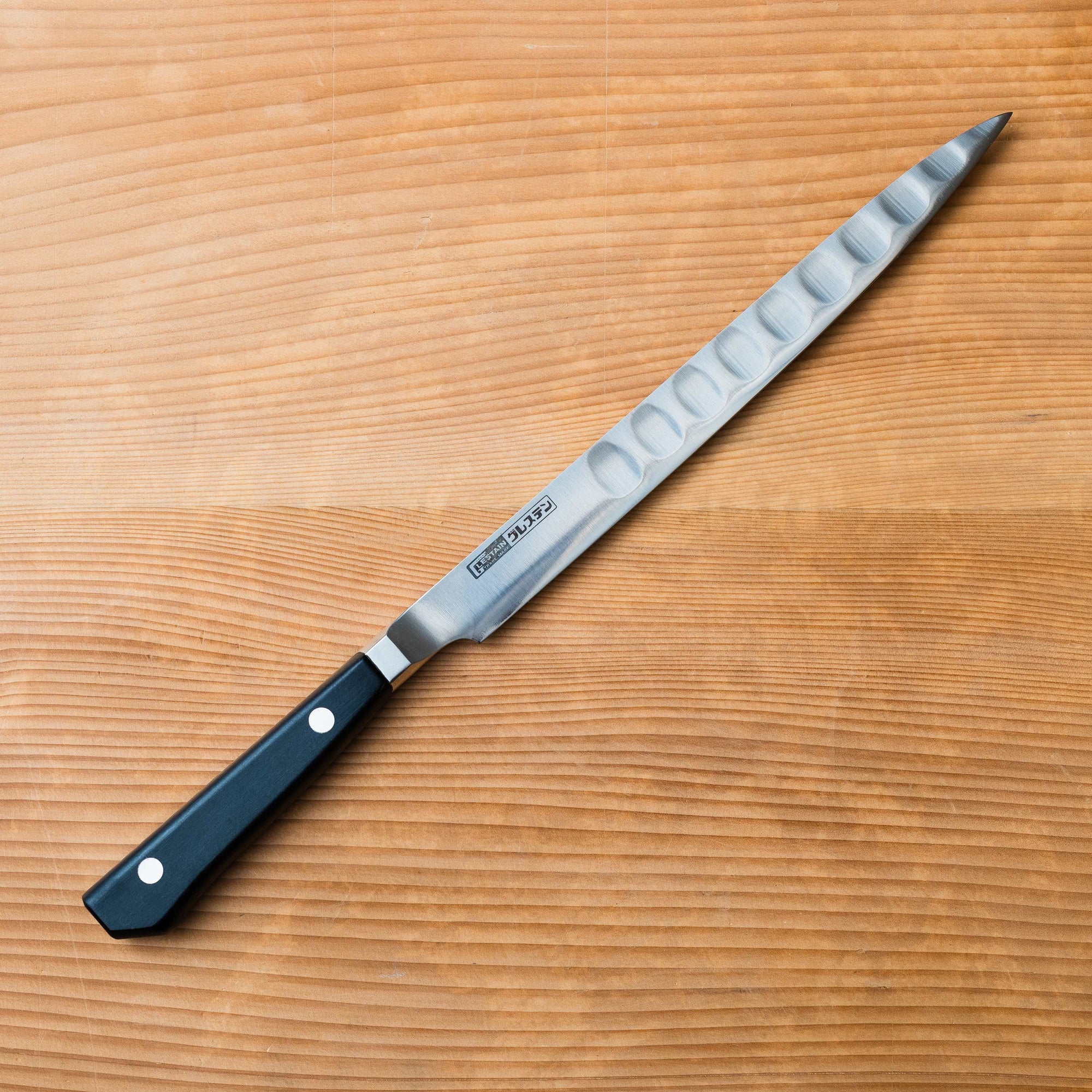 Glestain knives, made in Japan, have earned their place in professional kitchens worldwide. Known for their signature scalloped “dimples” on the side of the blade, these knives let food slide cleanly away, keeping prep work fast and efficient. Built from Acuto 440 stainless steel and treated with a sub-zero tempering process, Glestain knives hold an edge, resist rust and deliver reliable sharpness through heavy daily use.