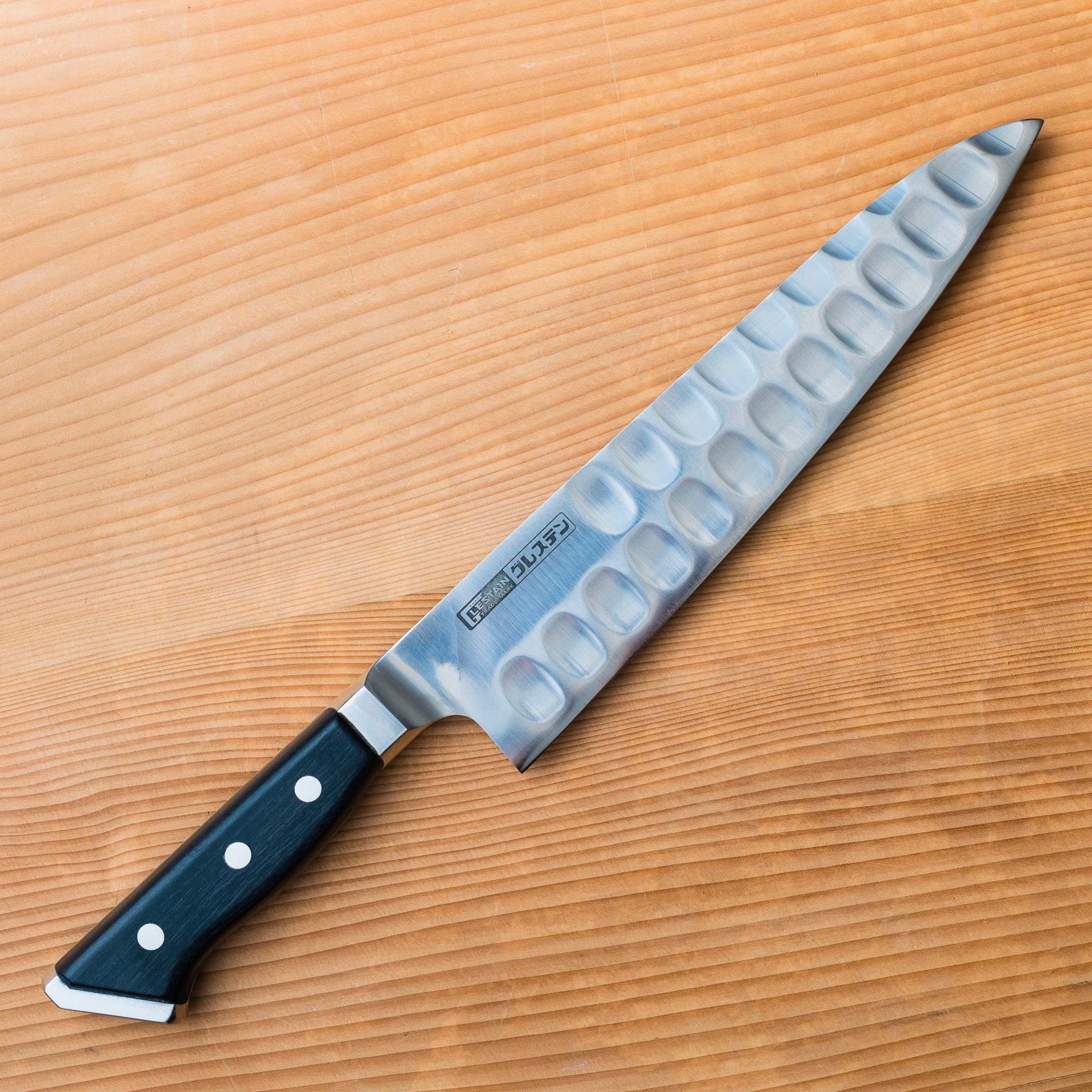 Every detail of a Glestain knife is engineered with professional chefs in mind. The deep blade dimples are more than just a design, as they prevent ingredients from clinging to your Japanese knife, so you can maintain a steady rhythm at the cutting board.