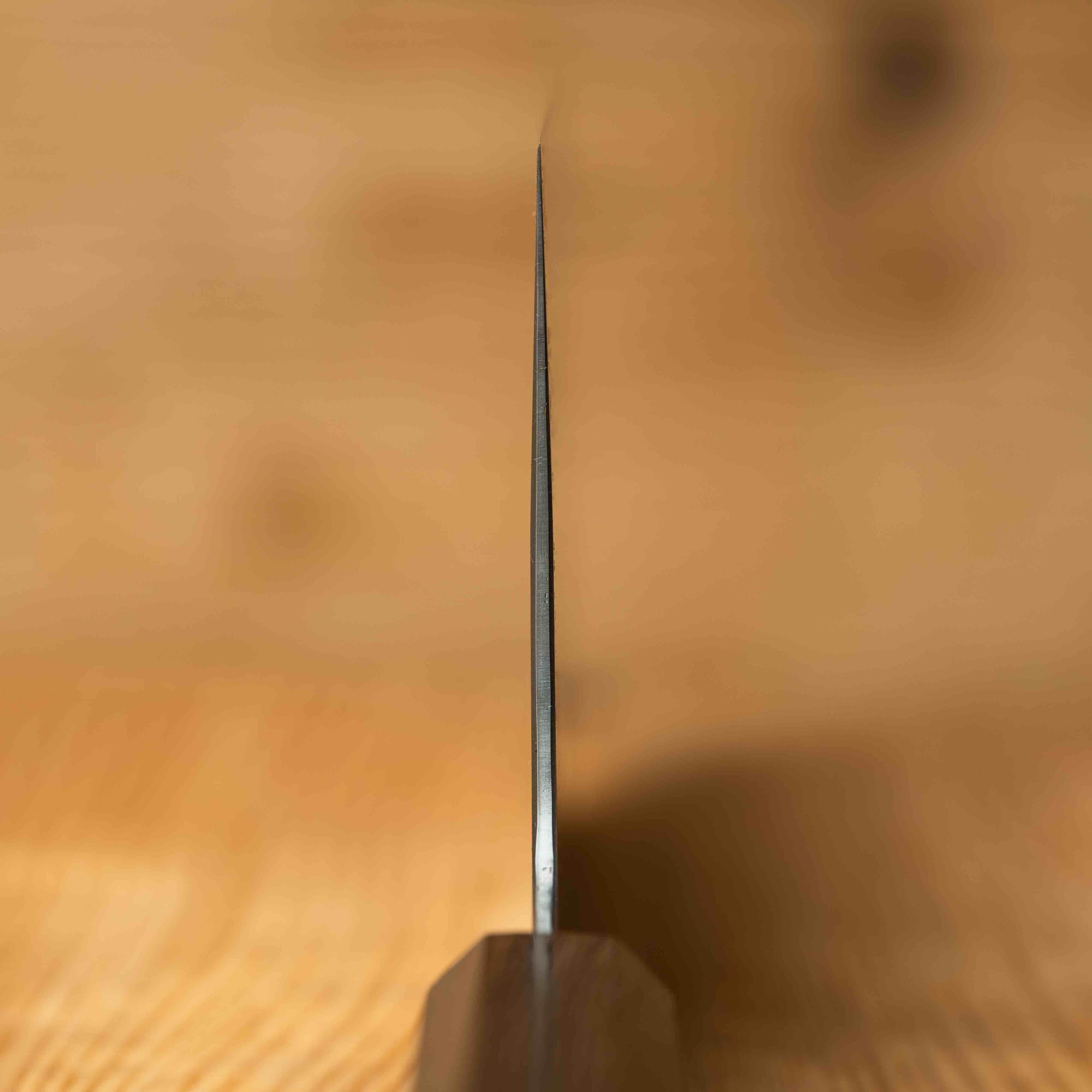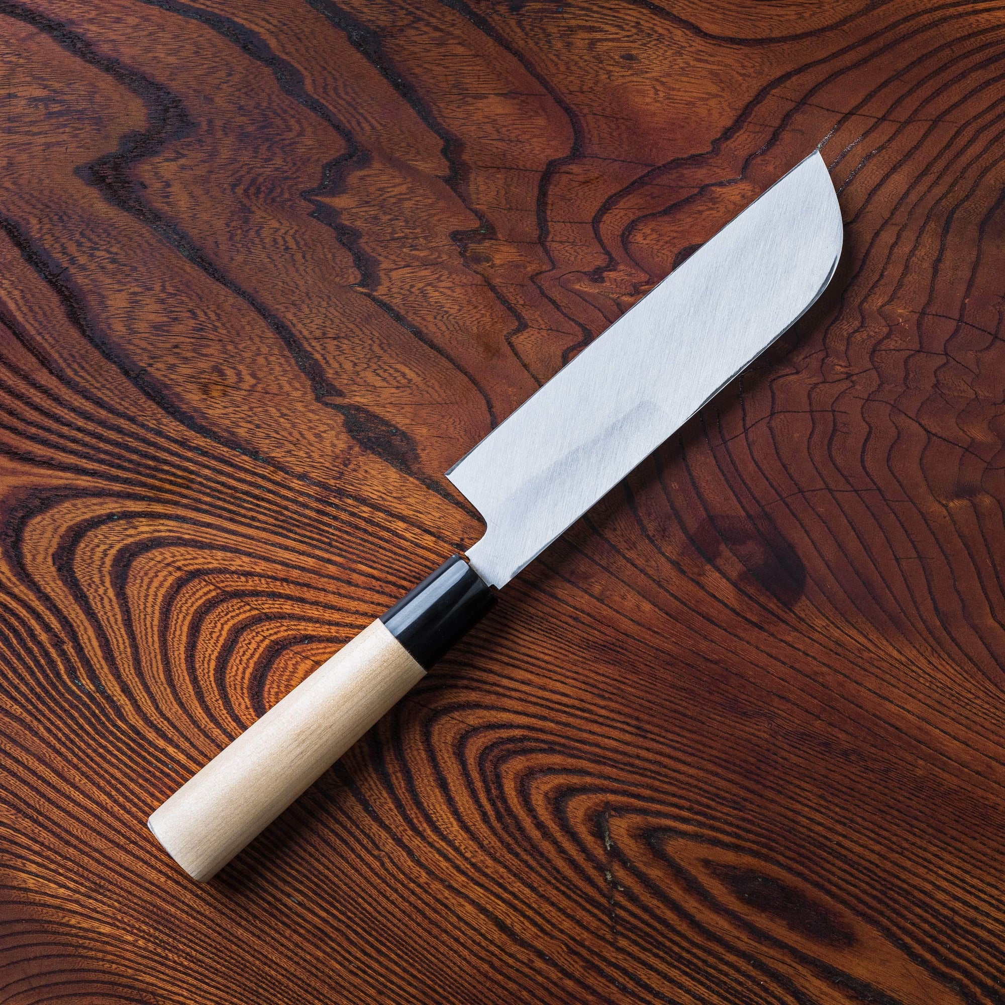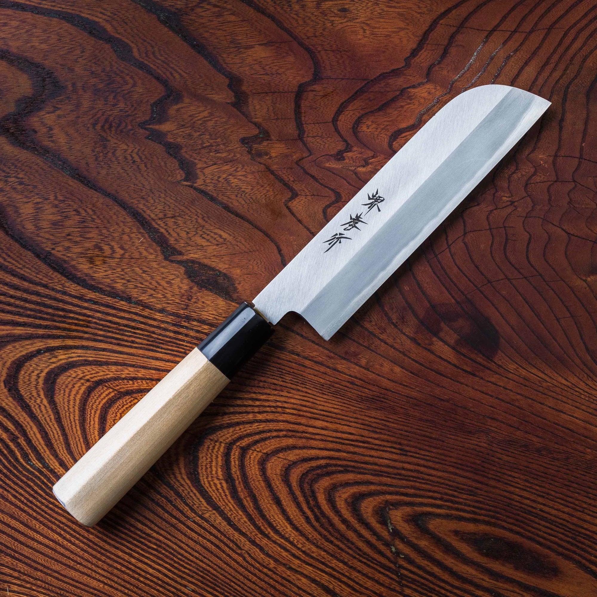 Perhaps the easiest to use and most commonly used by a home cook in the kitchen is a nakiri. Nakiri vegetable knives are generally 50/50 balanced and are the perfect tool to cut hard vegetables like squash, pumpkins, and potatoes. Because of their straight blade, nakiri knives are best suited for precision cuts such as julienne, brunoise, and allumette. Nakiri knives are also often used for paper-thin cuts, such as for creating garnishes for sashimi.