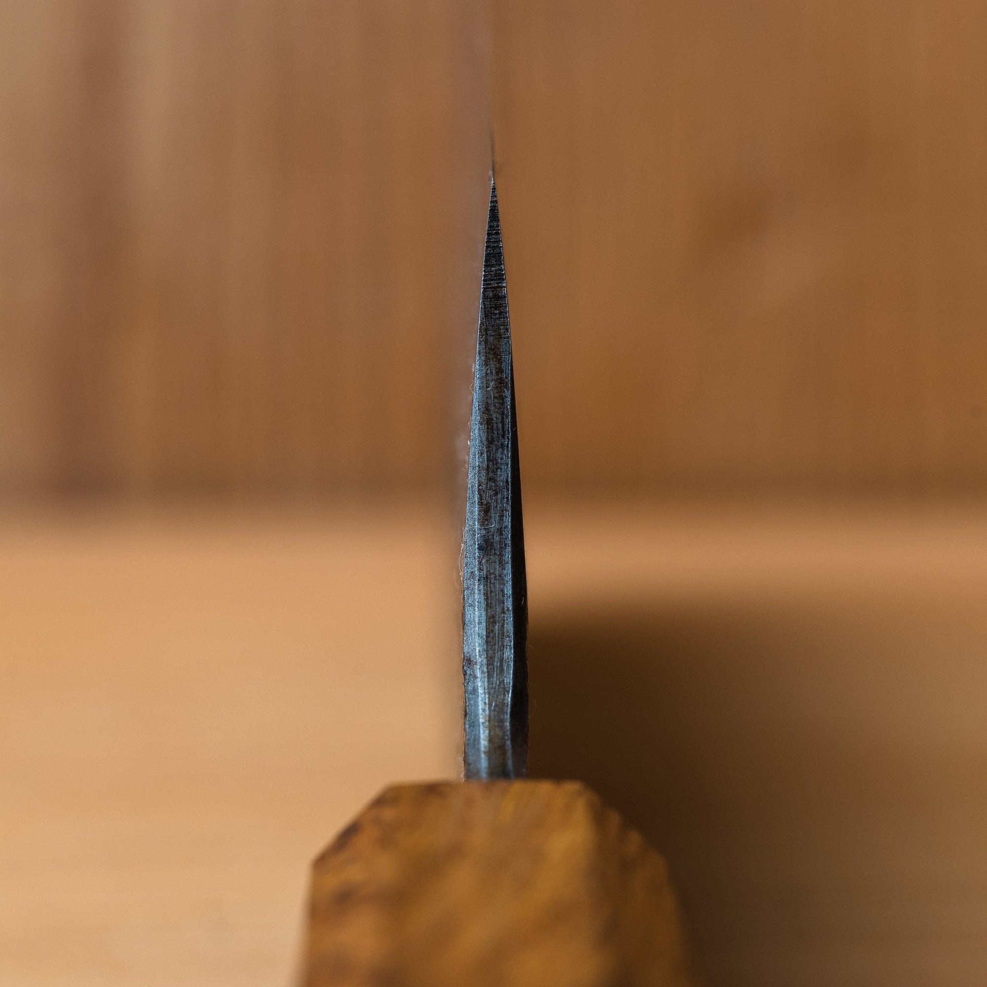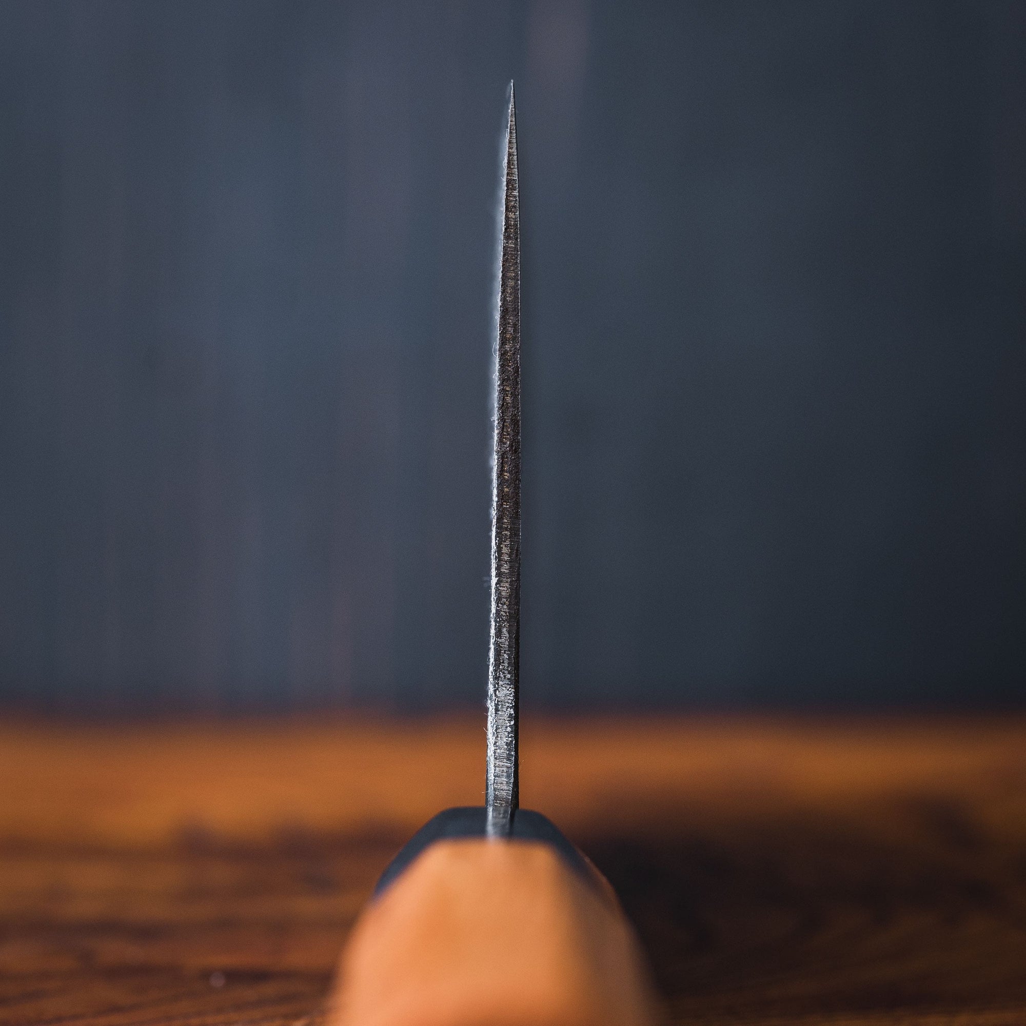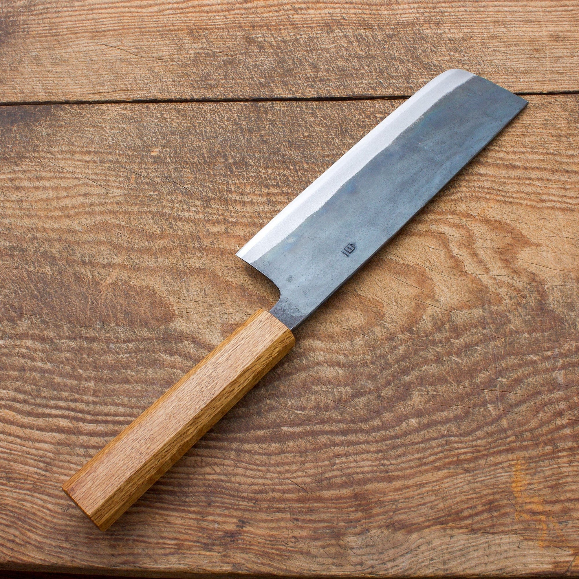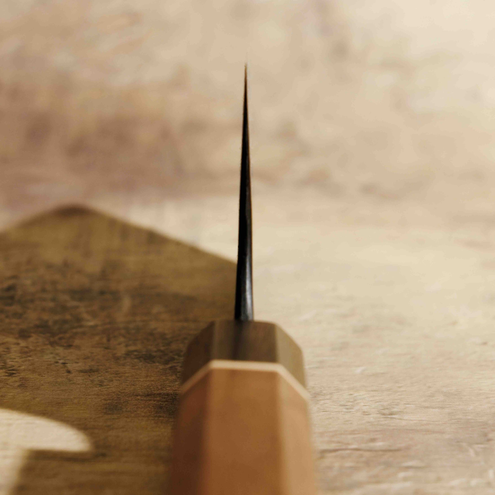 Perhaps the easiest to use and most commonly used by a home cook in the kitchen is a nakiri. Nakiri vegetable knives are generally 50/50 balanced and are the perfect tool to cut hard vegetables like squash, pumpkins, and potatoes. Because of their straight blade, nakiri knives are best suited for precision cuts such as julienne, brunoise, and allumette. Nakiri knives are also often used for paper-thin cuts, such as for creating garnishes for sashimi.