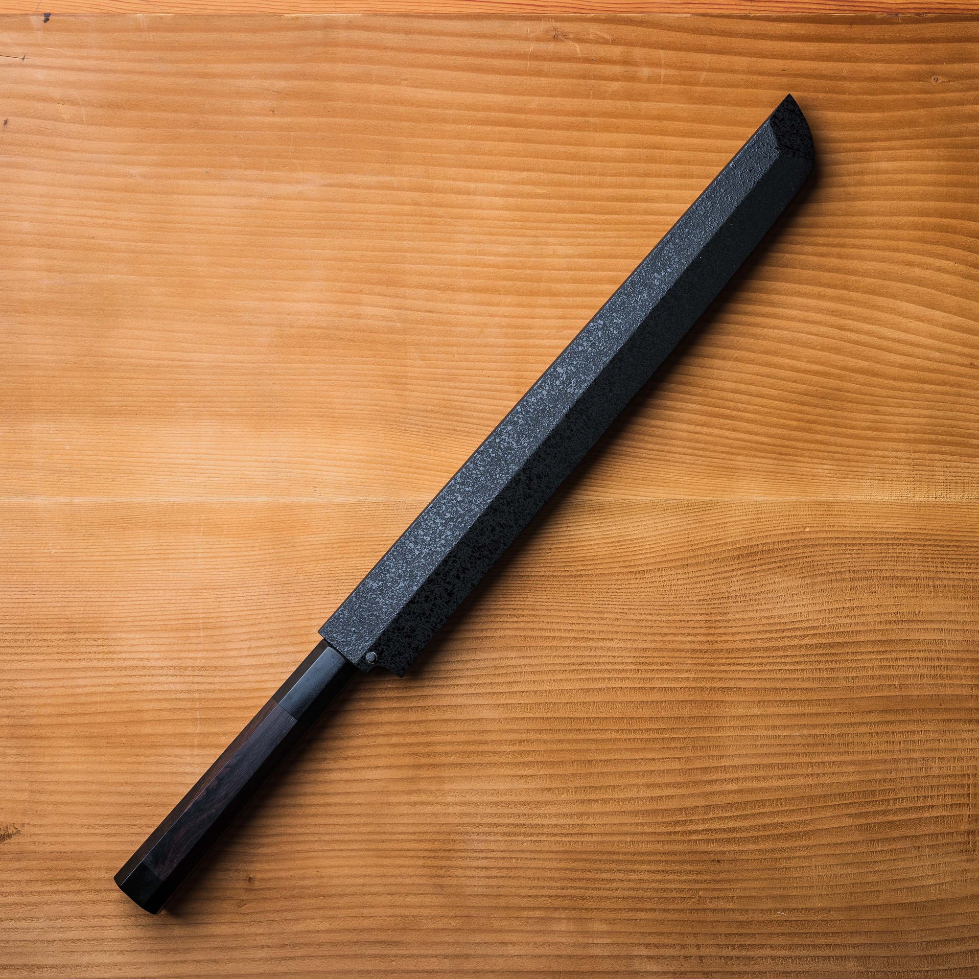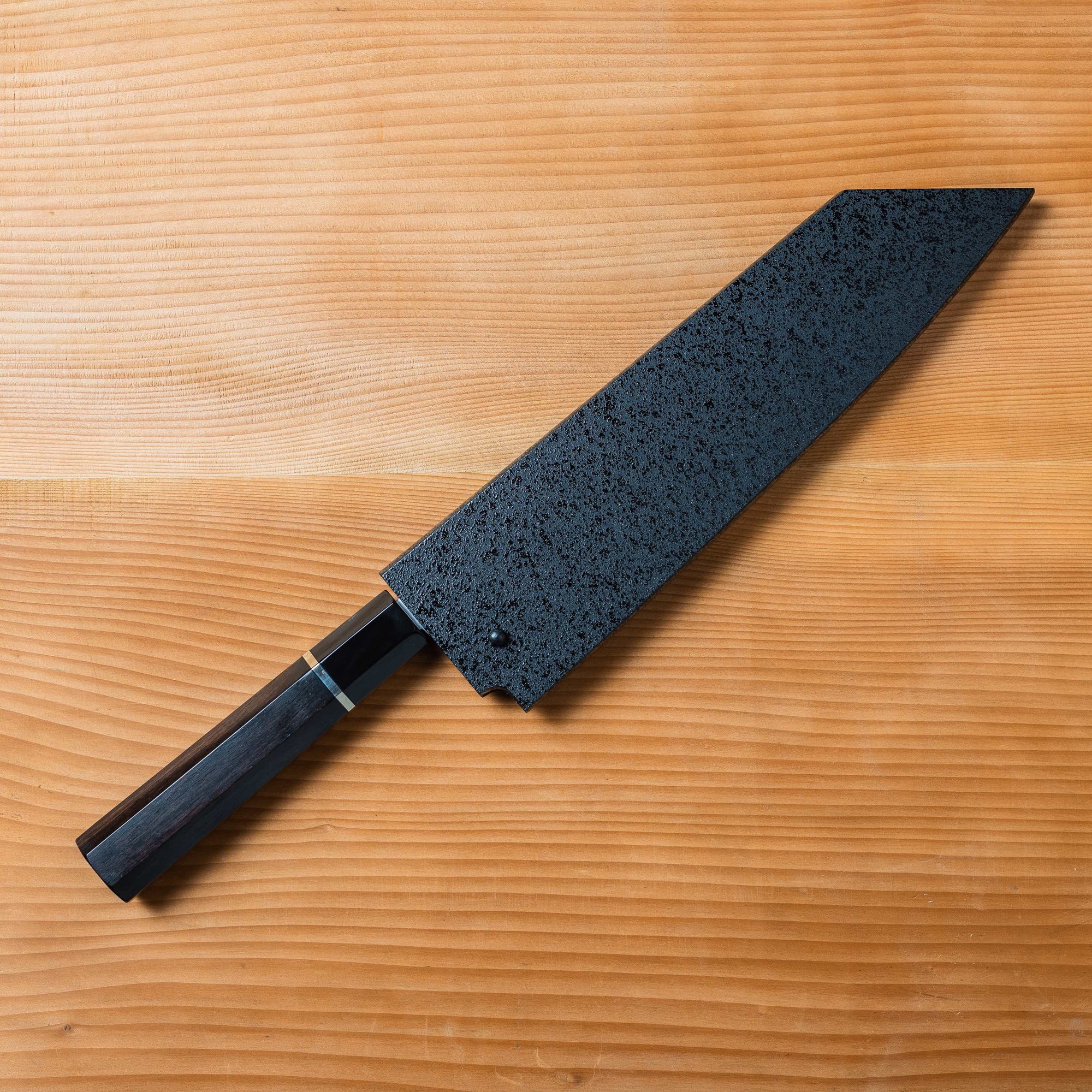 The Kiritsuke is a hybrid knife that combines elements of the Yanagi and Usuba, making it one of the most versatile blades in the Japanese chef’s arsenal. Recognized by its angled tip and long, straight edge, the Kiritsuke is built for slicing fish as well as fine vegetable work. Traditionally single-bevel and reserved for executive chefs in Japanese kitchens, it demands skill to master but rewards with precision. Modern double-bevel (Kiritsuke Gyuto) variants offer added versatility, suited for Western kitchens. Common steels include blue steels like Aogami Super and layered Damascus steel, often paired with octagonal wood (wa) handles for optimal grip.