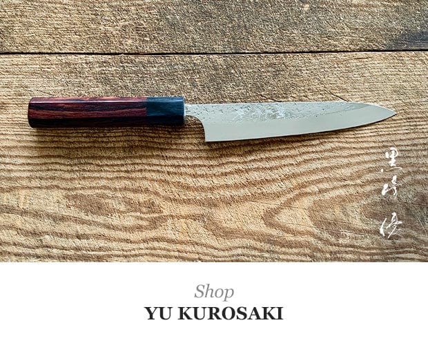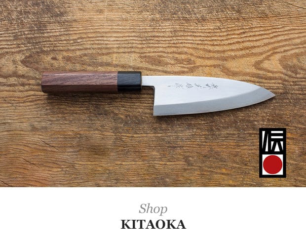 Hideo Kitaoka is a 3rd generation blacksmith forging in the Takefu Knife Village. This collection of debas is made from Aogami #2, a blue steel with excellent edge retention and durability. Forged in the 'awase' style, where a soft carbon is joined with a harder carbon steel cladding. These debas will handle any fish butchery task with ease.